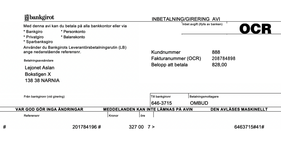 Trots att det finns gott om lösningar för att ta betalt direkt på nätet, får man fortfarande hem brev med posten och pappersfakturor som skall betalas. Själva AVI-et är anpassad för inläsningscentral och ser därför ut som det gjorde på 80-talet.